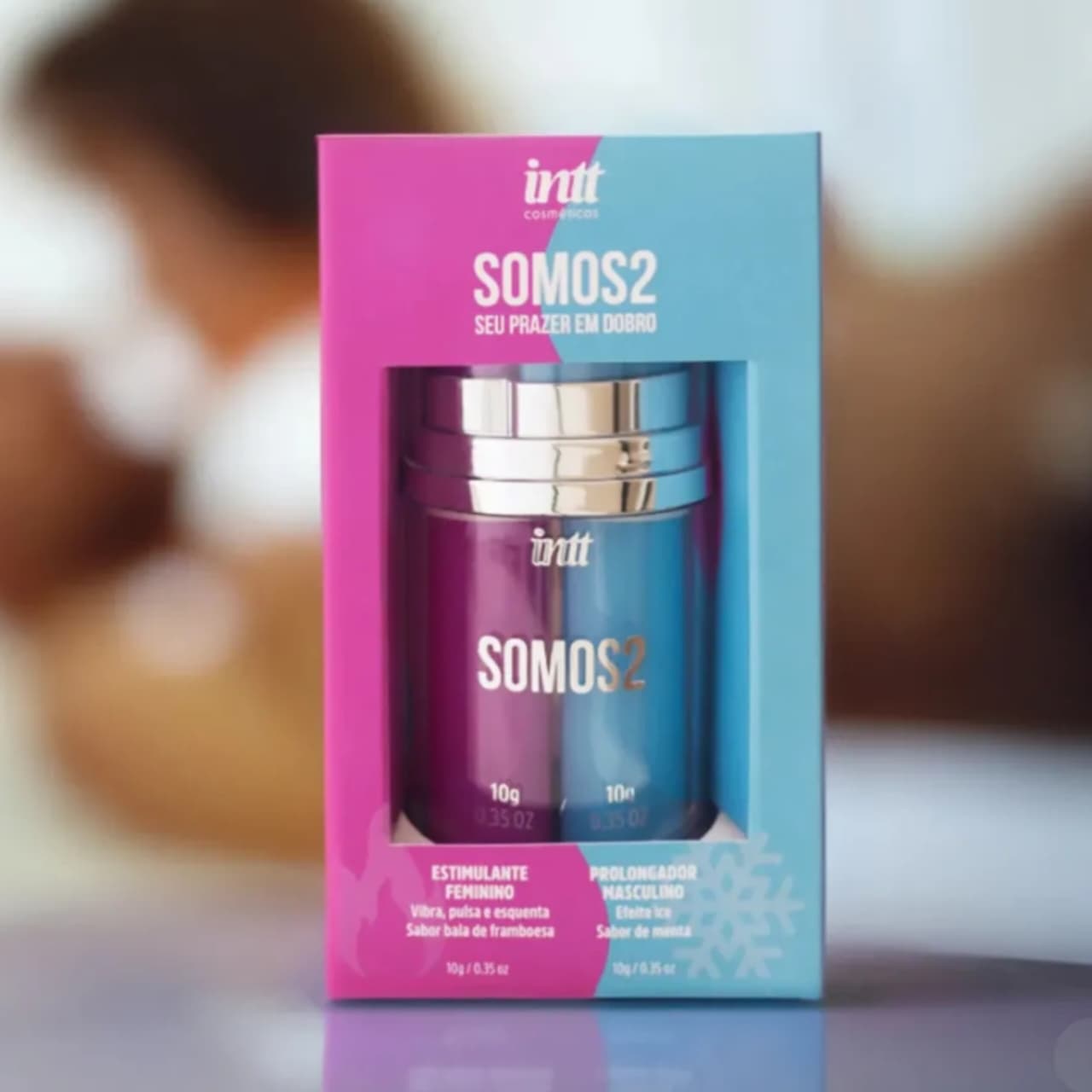 O Somos2 foi especialmente formulado para ajudar os casais a redescobrirem a proximidade e a cumplicidade. Na relação a dois, o homem ganha confiança com um gel de efeito gelado que prolonga o desempenho, enquanto a parceira é estimulada com um gel que pulsa, vibra e esquenta, proporcionando prazer mais intenso e rápido.