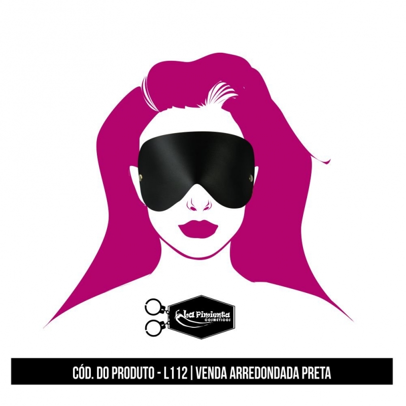 Venda confeccionada artesanalmente em material sintético na cor preta, com revestimento aveludado que garante conforto e adaptação perfeita no rosto.